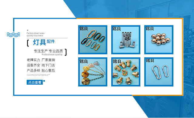 温州铭良标准件有限公司是生产紧固件的源头厂家,公司坐落于温州市龙湾区永中街道中心工业区纪风路138号,主要生产灯具配件、汽车零配件、非标件等产品专业生产加工的公司,拥有完整、科学的质量管理体系。 自公司成立以来,本着“质量为先,服务为本”的经营理念,服务于新老客户,获得新老客户的一致好评,现已拥有完整的线上线下销售渠道,始终坚持“诚信、品质、创新、服务、速度”十字经营方针,对待客户、合作伙伴坚持诚信为先,我们要为客户不断提供优良的产品和及时周到的服务,并不断创新,提高我们的服务能力,欢迎各界朋友莅临参观、指导和业务洽谈。